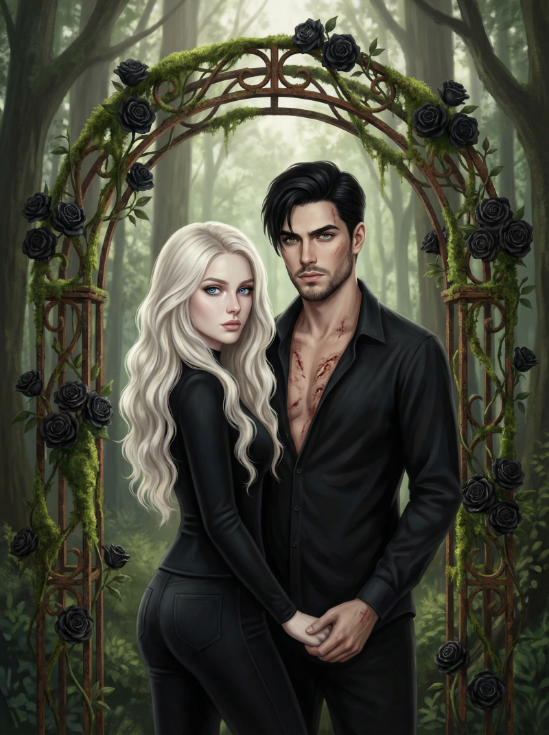 Lyra und Fenris verharren vor der Schwelle des Rosenbogens, als stünden sie am Rande eines Abgrunds, der nicht in die Tiefe, sondern in die nackte Wahrheit führt. Der Bogen ragt vor ihnen auf wie das Skelett eines vergessenen Gottes, umschlungen von Ranken, die im Halbschatten der hohen Bäume wie erstarrte Nattern wirken. In der flirrenden Sommerluft scheint dieser Ort zu pulsieren; eine unsichtbare Grenze, die das Heute von jenem Gestern trennt, das sie beinahe verschlungen hätte.